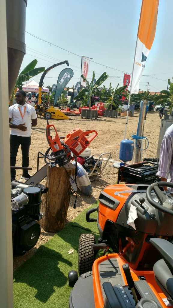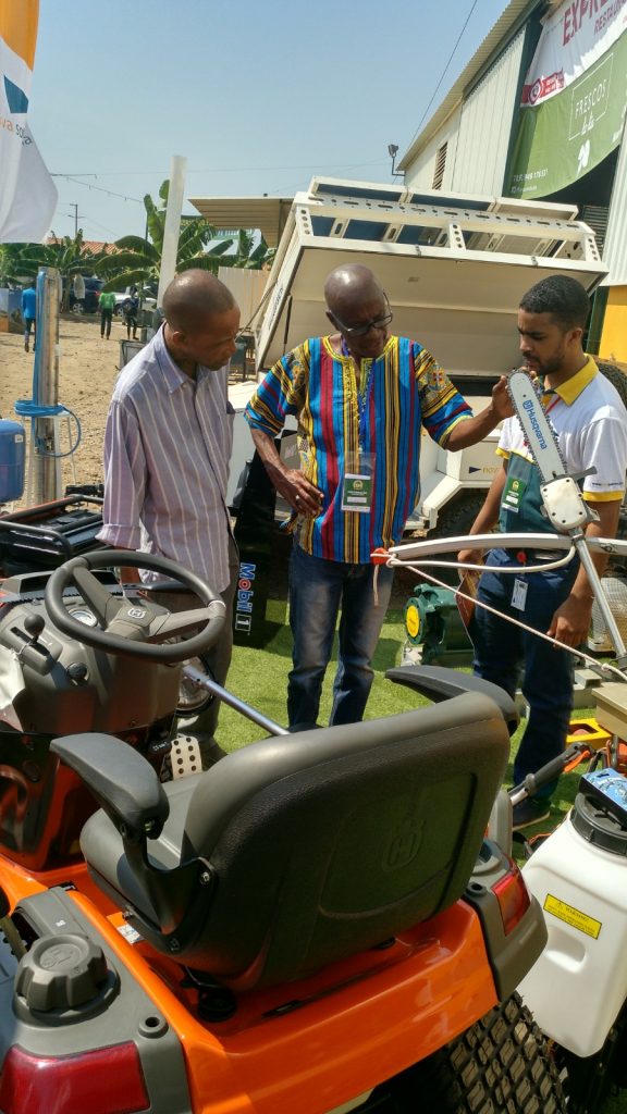 Apresentámos um stand exterior com alguns equipamentos adequados para o sector agrícola, em particular Bombas de Água e Motobombas – GRUNDFOS -, Motoserras e Motocultivadores – HUSQVARNA- , Geradores a Diesel – GRUPEL -, Baterias – VARTA – os nossos Moinhos de Martelo – NOVA SOTECMA – feitos em Angola entre outros produtos que dispomos habitualmente em stock para apoiar a nossa economia.